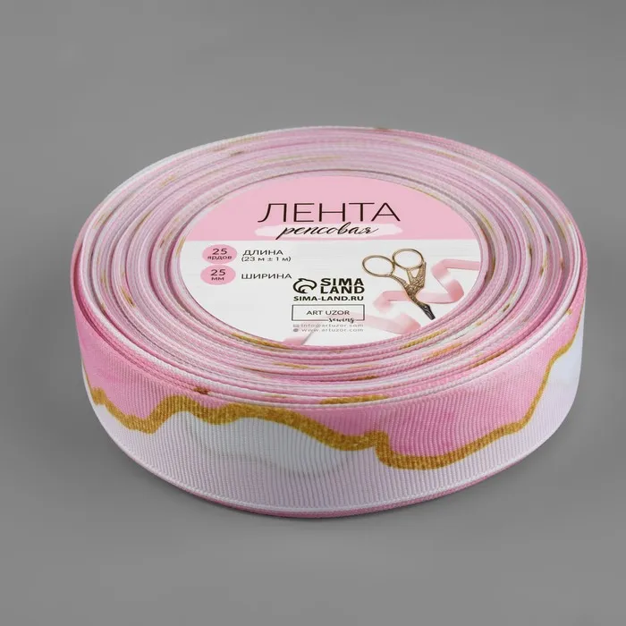 Лента репсовая «Мрамор», 25 мм, 23±1 м, белая, розовая — Характеристики