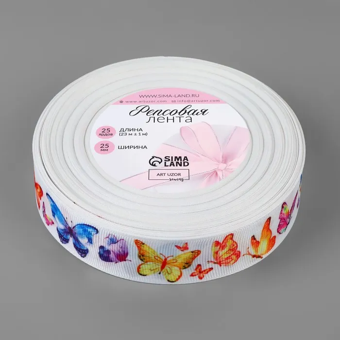 Лента репсовая «ные бабочки», 25 мм, 23±1 м, разноцветная — Характеристики