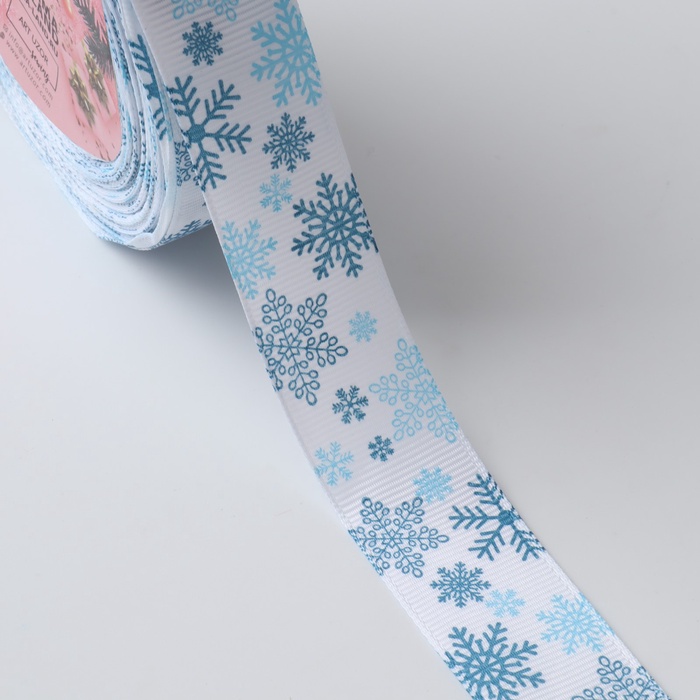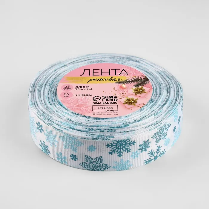 Лента репсовая «Объёмные снежинки», 25 мм, 23 ± 1 м, цвет белый №1001 — Характеристики