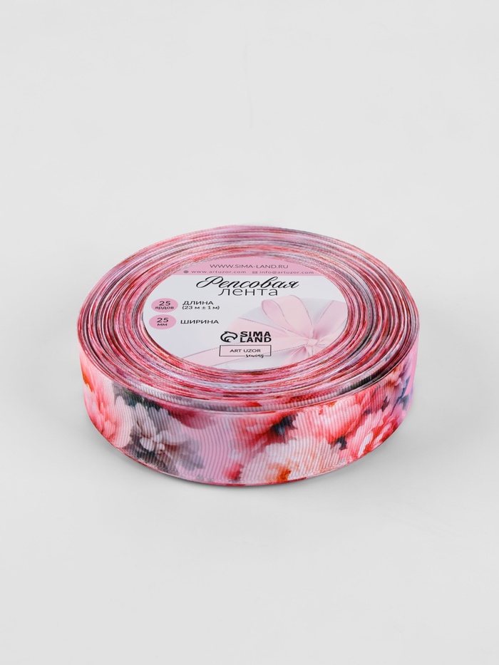 Лента репсовая «Пионы», 25 мм, 23±1 м, разноцветная — Характеристики