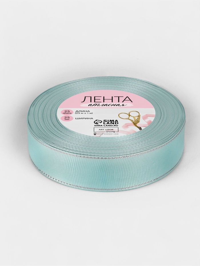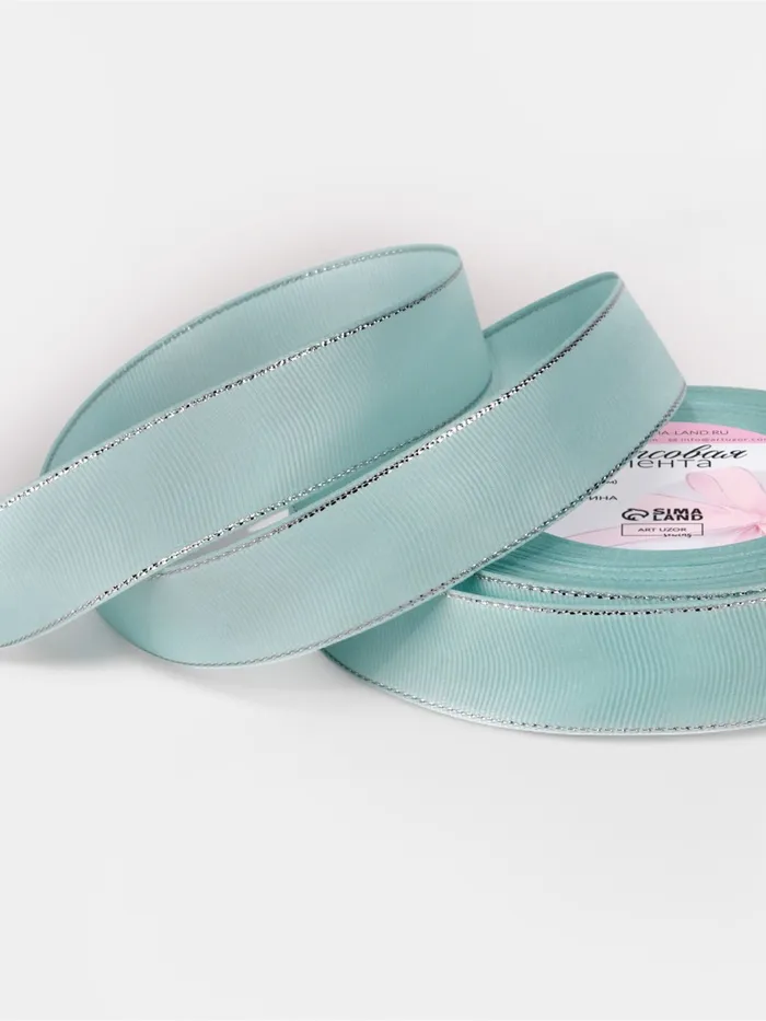 Лента репсовая, с серебряным люрексом, 25 мм, 23±1 м, светло-голубая №013 — Характеристики