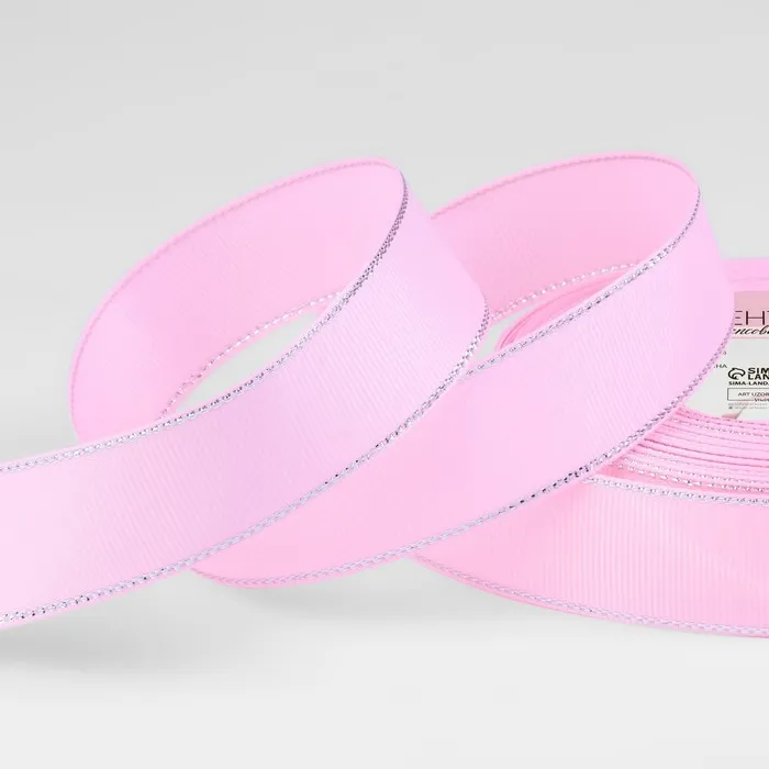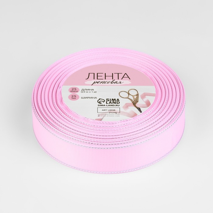 Лента репсовая, с серебряным люрексом, 25 мм, 23±1 м, светло-розовая №004 — Характеристики