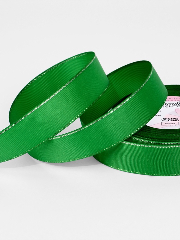 Лента репсовая, с серебряным люрексом, 25 мм, 23±1 м, зелёная №019 — Характеристики