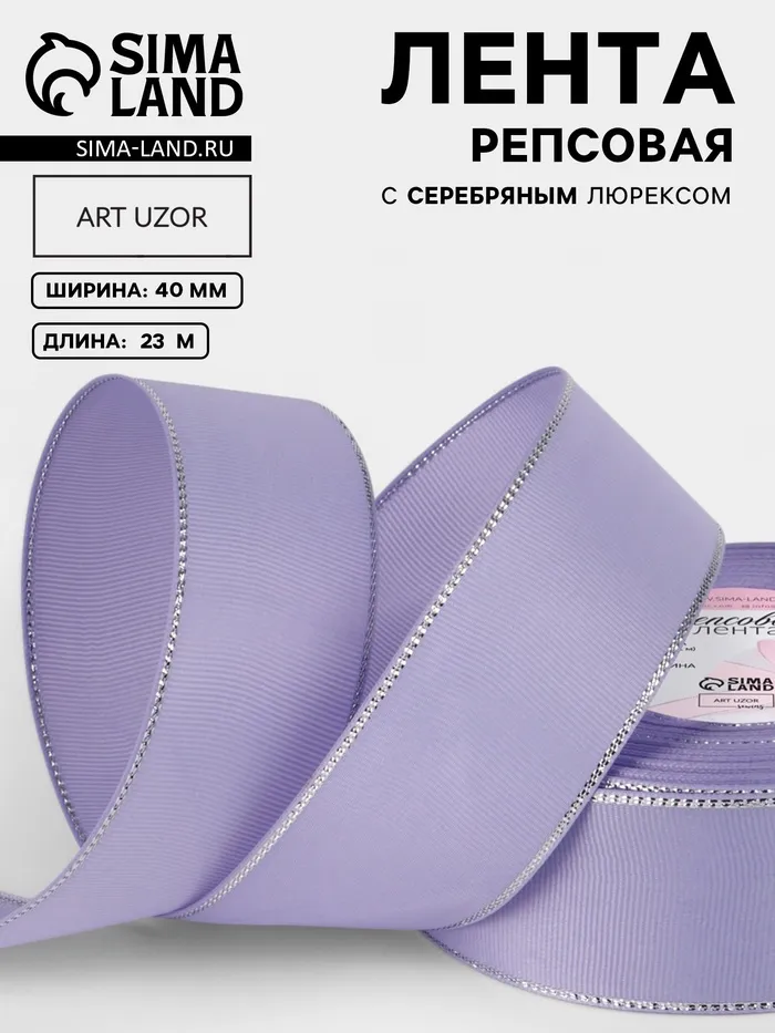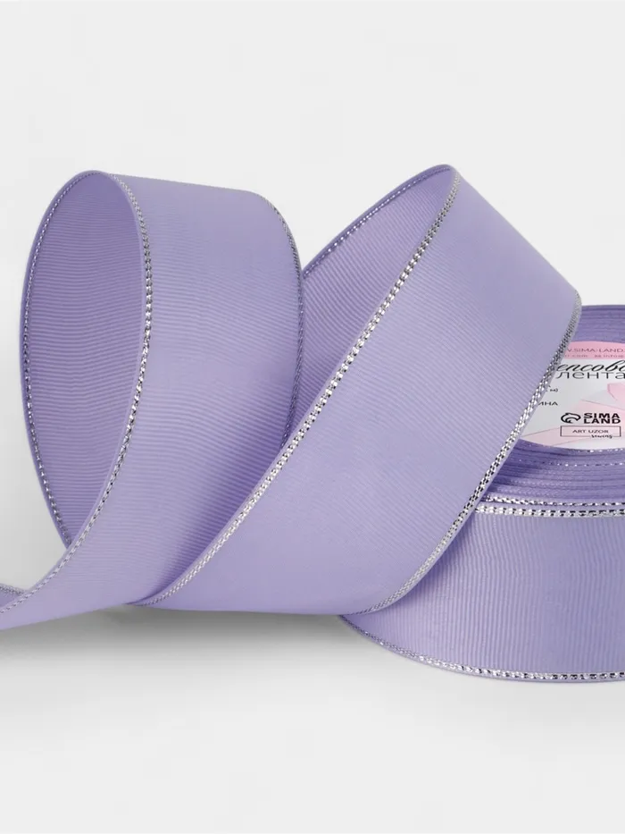 Лента репсовая, с серебряным люрексом, 40 мм, 23±1 м, сиреневая №021 — Характеристики