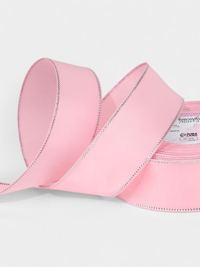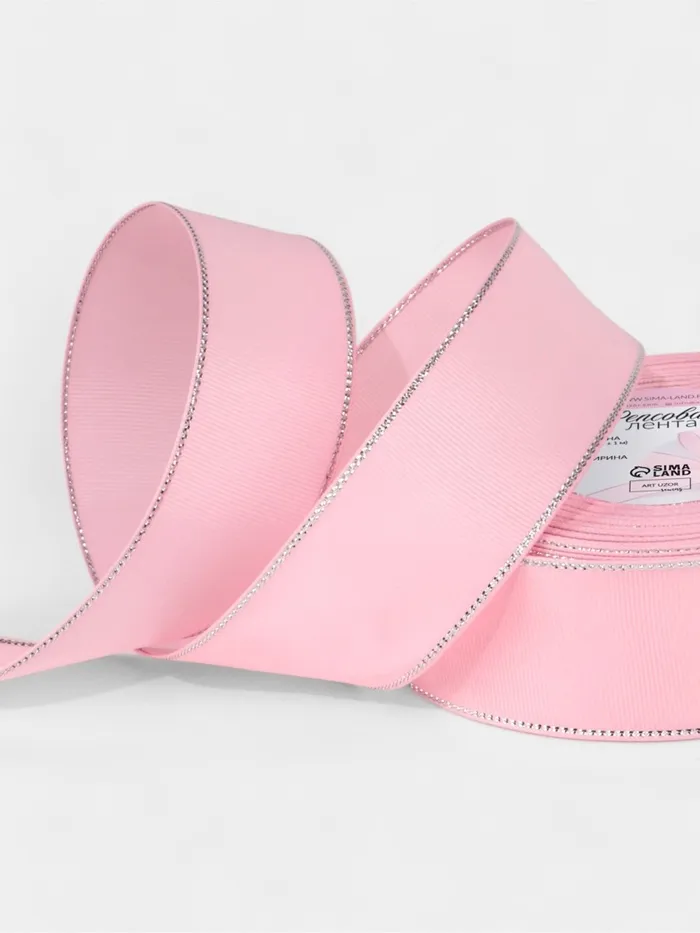 Лента репсовая, с серебряным люрексом, 40 мм, 23±1 м, светло-розовая №004 — Характеристики