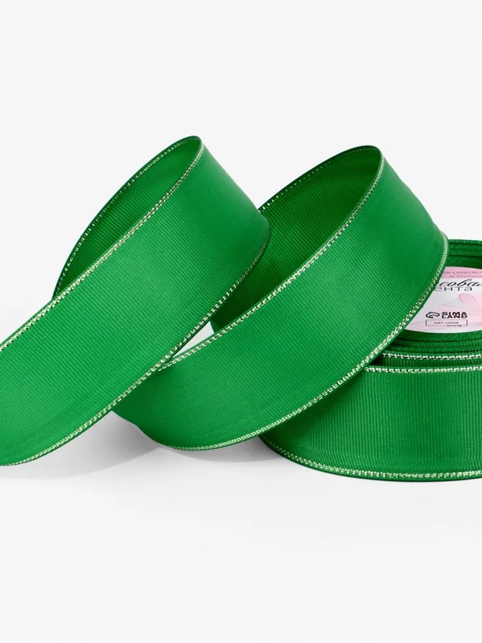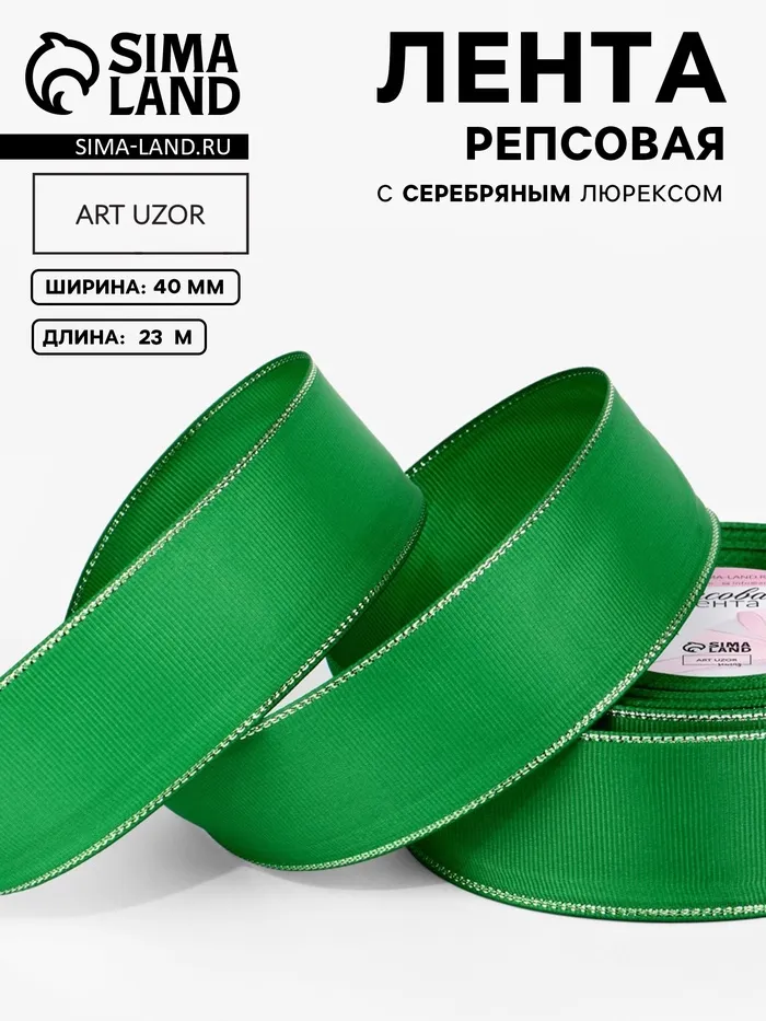 Лента репсовая, с серебряным люрексом, 40 мм, 23±1 м, зелёная №019 — Характеристики