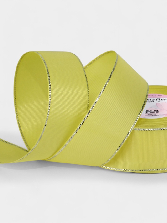 Лента репсовая, с серебряным люрексом, 40 мм, 23±1 м, жёлтая №015 — Характеристики