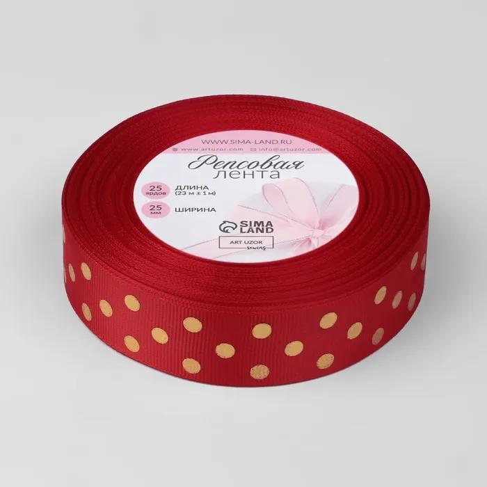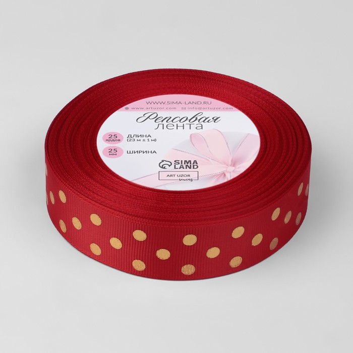 Лента репсовая с тиснением «Горох», 25 мм, 23±1 м, красная №026 — Характеристики