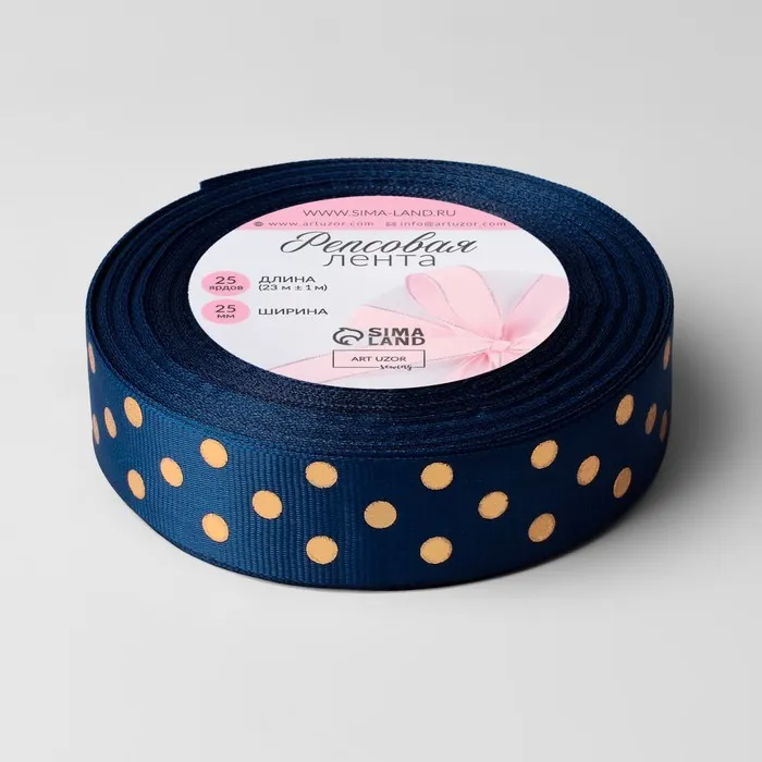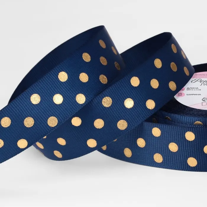 Лента репсовая с тиснением «Горох», 25 мм, 23±1 м, тёмно-синяя №036 — Характеристики