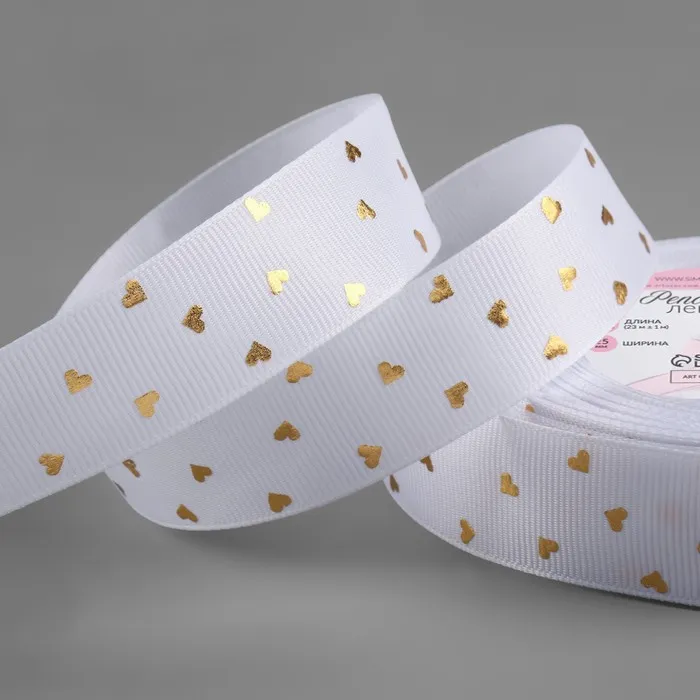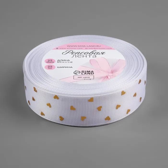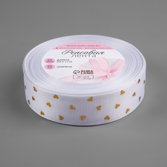 Лента репсовая с тиснением «Сердечки», 25 мм, 23±1 м, белая №001 — Характеристики
