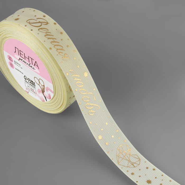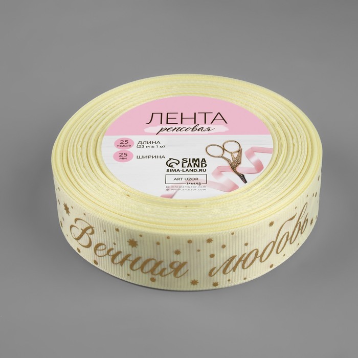 Лента репсовая с тиснением «Вечная любовь», 25 мм, 23±1 м, сливочная, золотая — Характеристики