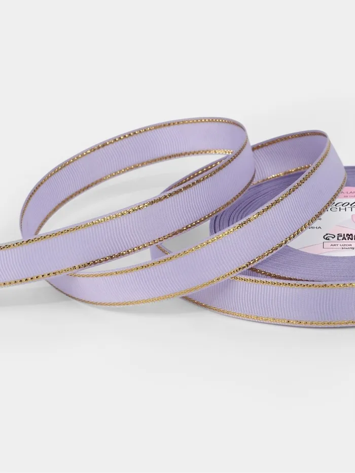 Лента репсовая, с золотым люрексом, 15 мм, 23±1 м, сирненевая №021 — Характеристики