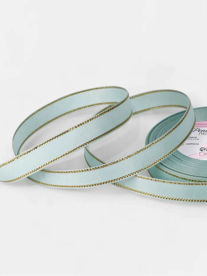 Лента репсовая, с золотым люрексом, 15 мм, 23±1 м, светло-голубая №013 — Характеристики