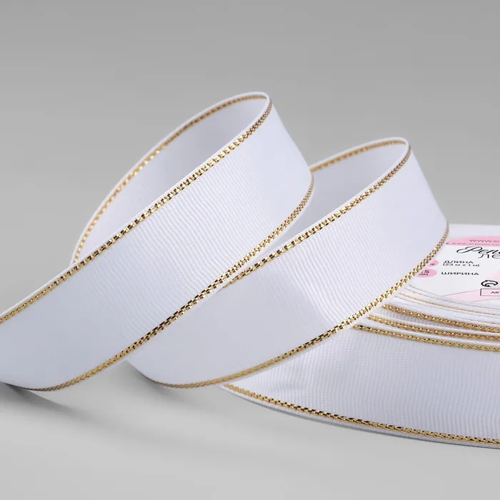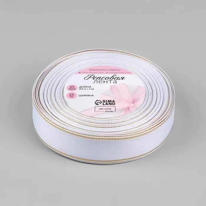 Лента репсовая, с золотым люрексом, 25 мм, 23±1 м, белая №001 — Характеристики