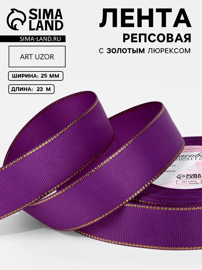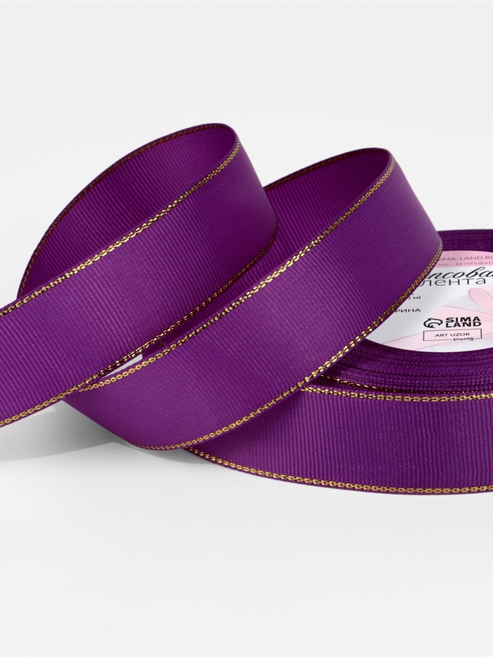 Лента репсовая, с золотым люрексом, 25 мм, 23±1 м, фиолетовая №046 — Характеристики