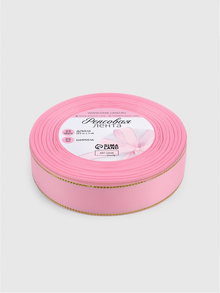 Лента репсовая, с золотым люрексом, 25 мм, 23±1 м, розовая №004 — Характеристики