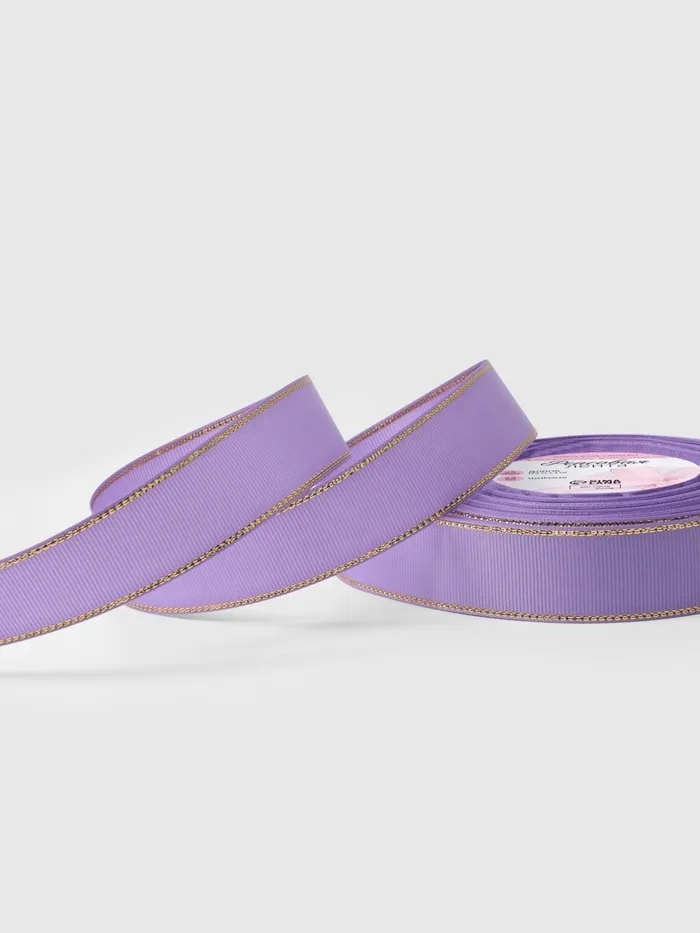Лента репсовая, с золотым люрексом, 25 мм, 23±1 м, сиреневая №021 — Характеристики