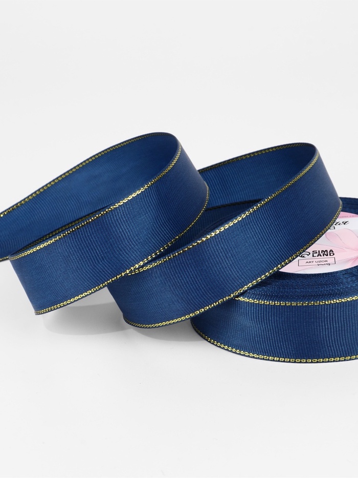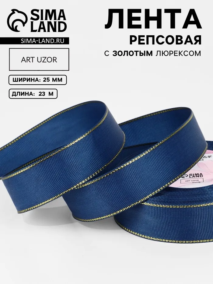 Лента репсовая, с золотым люрексом, 25 мм, 23±1 м, тёмно-синяя №038 — Характеристики