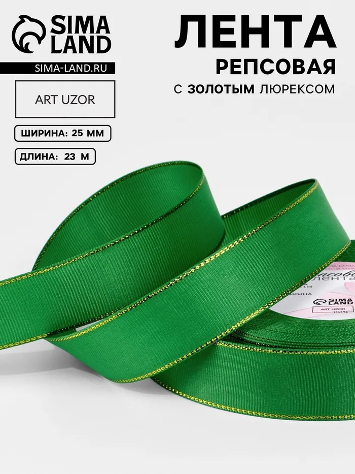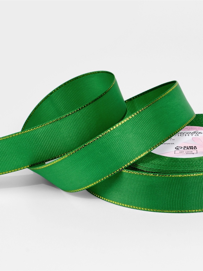 Лента репсовая, с золотым люрексом, 25 мм, 23±1 м, зелёная №019 — Характеристики