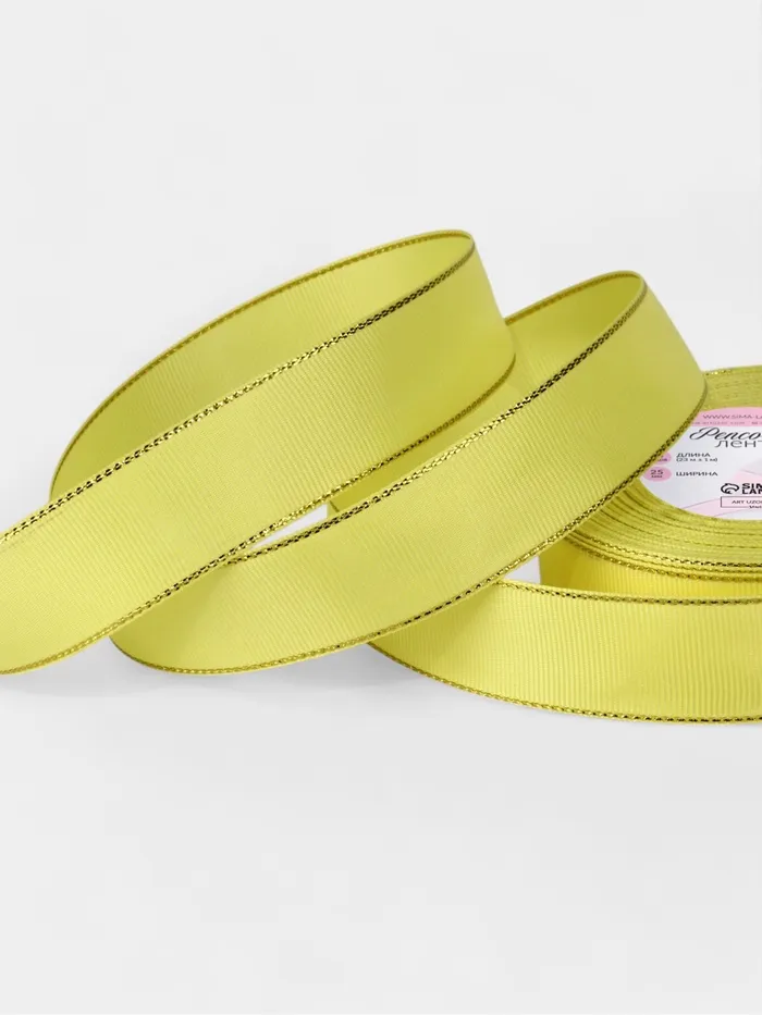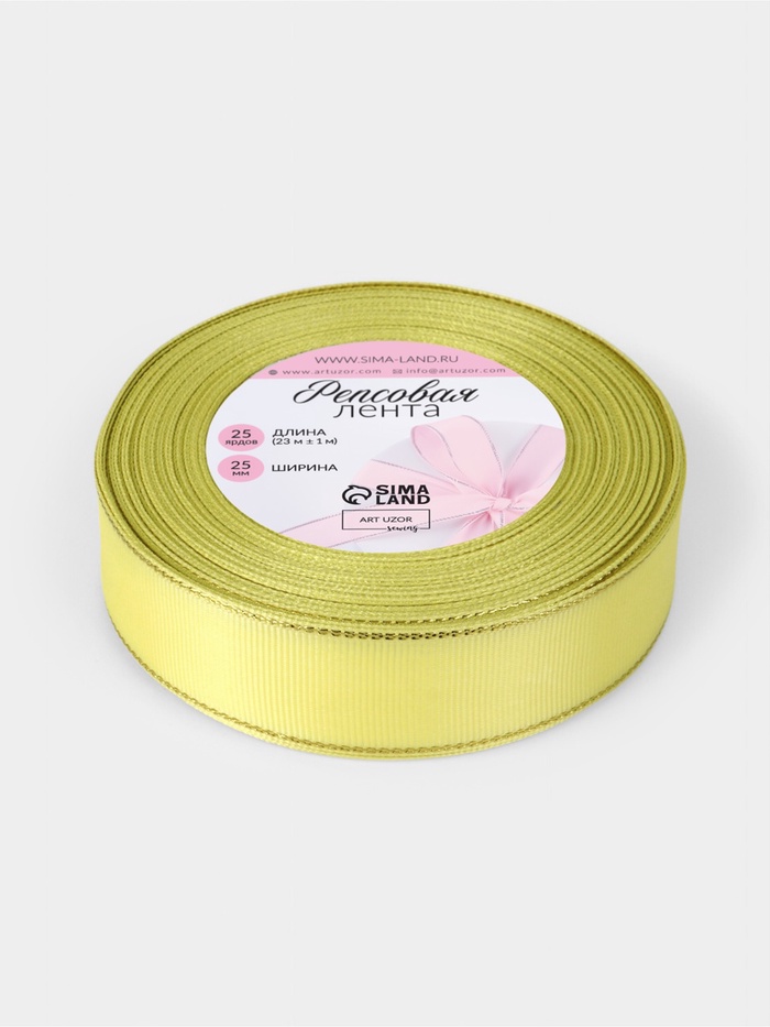 Лента репсовая, с золотым люрексом, 25 мм, 23±1 м, жёлтая №015 — Характеристики