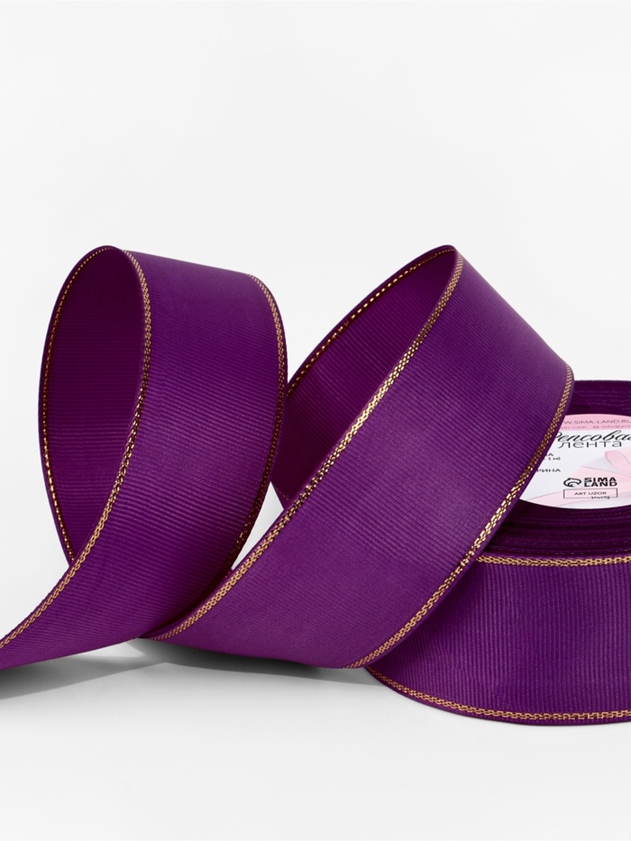 Лента репсовая, с золотым люрексом, 40 мм, 23±1 м, фиолетовая №046 — Характеристики