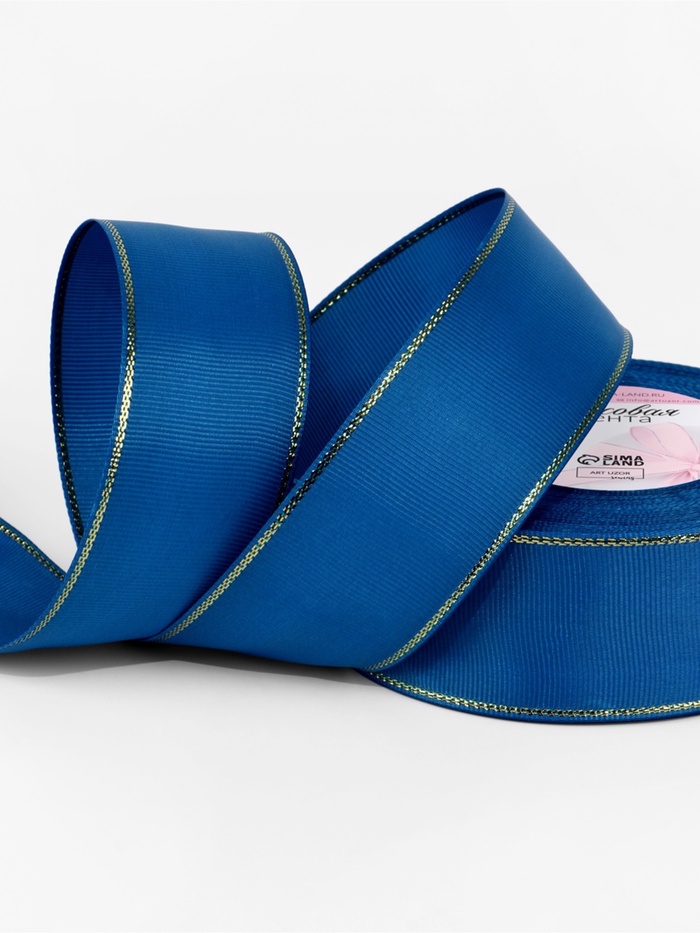 Лента репсовая, с золотым люрексом, 40 мм, 23±1 м, синяя №040 — Характеристики