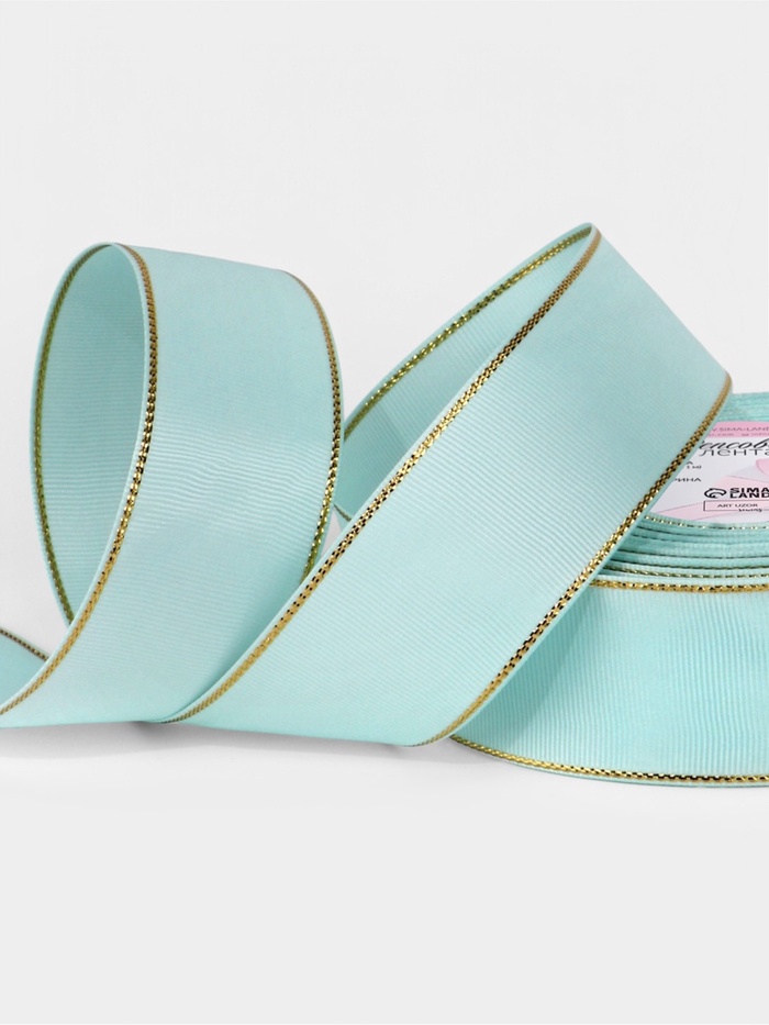 Лента репсовая, с золотым люрексом, 40 мм, 23±1 м, светло-голубая №013 — Характеристики
