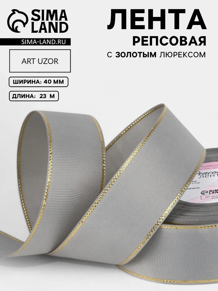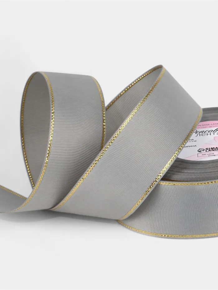 Лента репсовая, с золотым люрексом, 40 мм, 23±1 м, светло-серая №003 — Характеристики