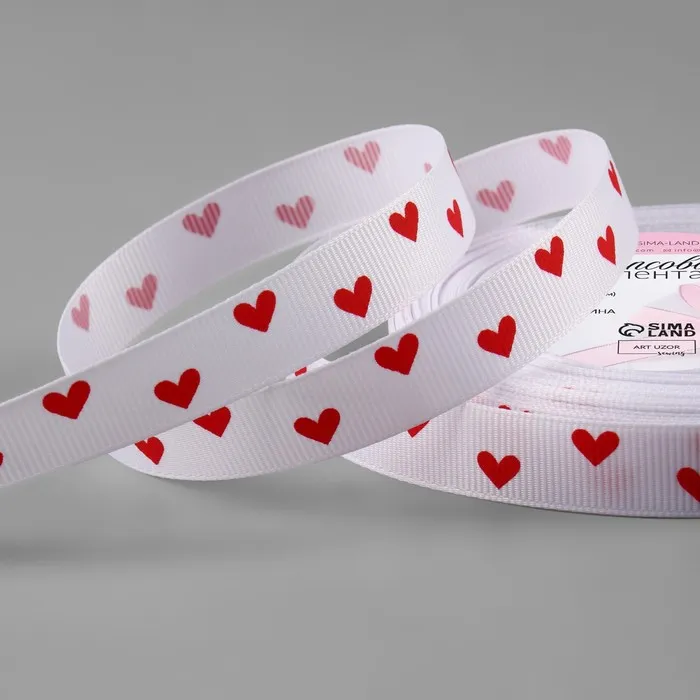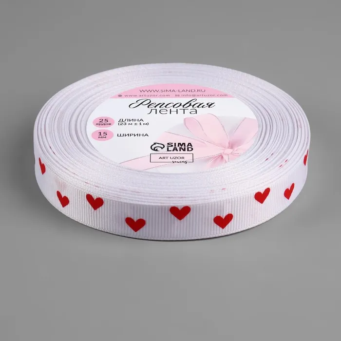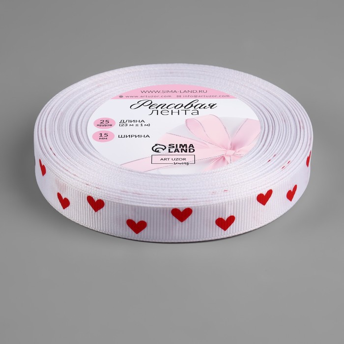 Лента репсовая «Сердечки», 15 мм, 23±1 м, белая, красная №001 — Характеристики