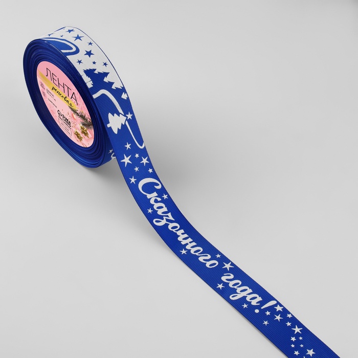 Лента репсовая «Сказочного года!», 25 мм, 23±1 м, синяя, белая №040 — Характеристики