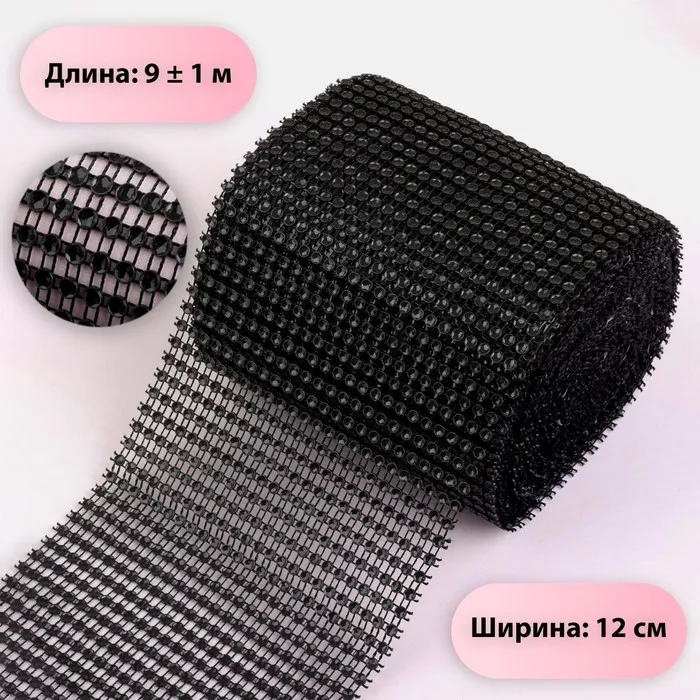 Чёрная лента с имитацией страз — это эффектный элемент декора, сочетающий строгость цвета и блеск драгоценных камней. Ширина 12 см создаёт насыщенный визуальный объём, а текстура поверхности имитирует переливы страз без их хрупкости. Длина 10 метров позволяет использовать ленту как для масштабных проектов, так и в качестве точечного акцента.