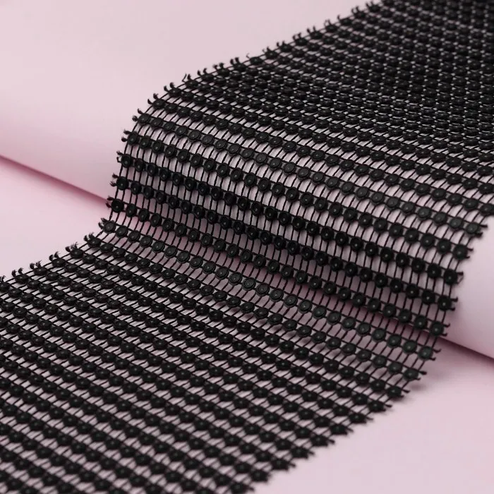 Эта лента придаст изделиям роскошный внешний вид: её можно использовать как отделку платьев, бретельки сумок, рамки для постеров или детали карнавального образа. Чёрный цвет усиливает контраст и фокусирует внимание на текстуре. Легко режётся и фиксируется — вы получаете эффектный результат без лишних усилий и с минимальными рисками повреждения материала.