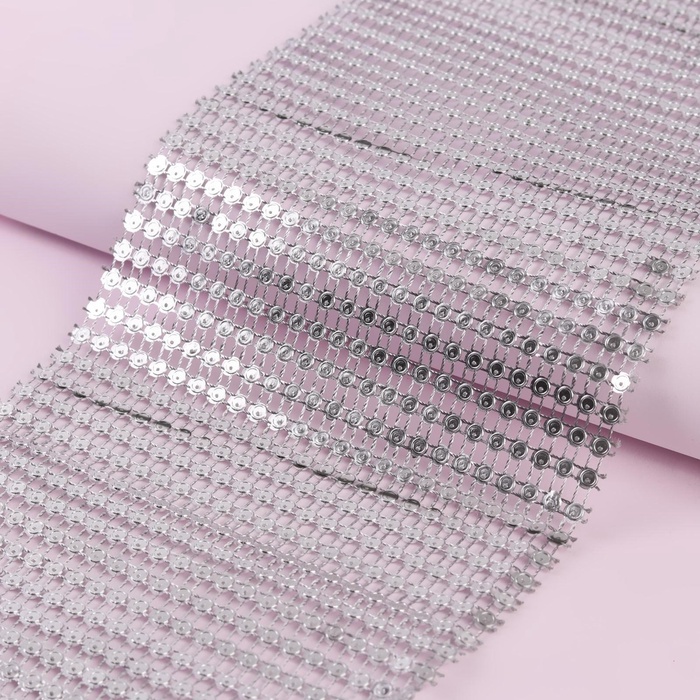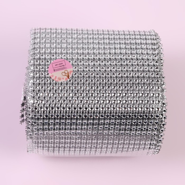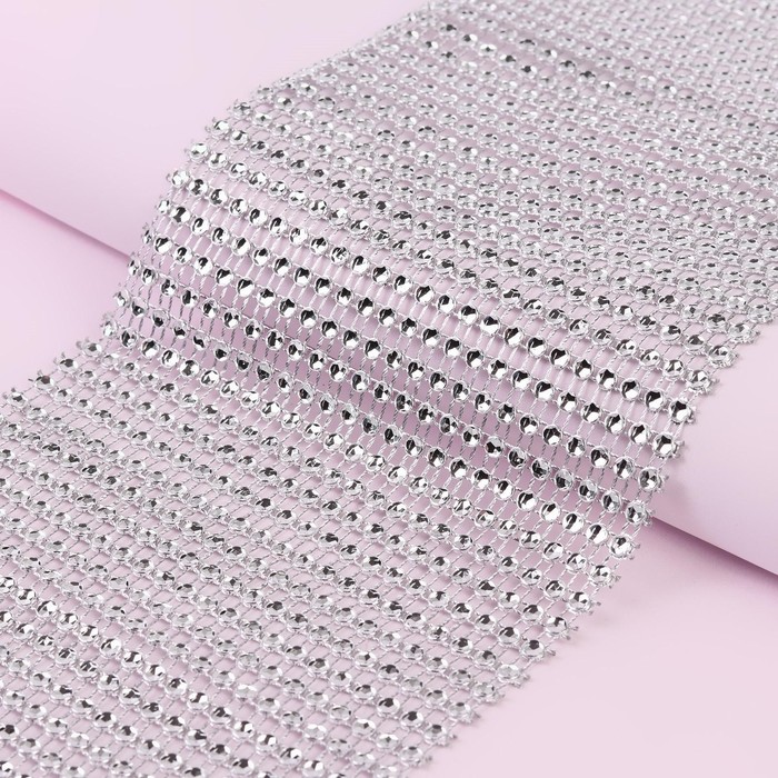 Лента с имитацией страз, 12 см, 9±1 м, цвет серебряный