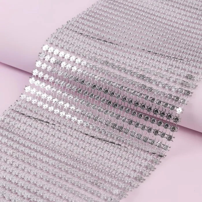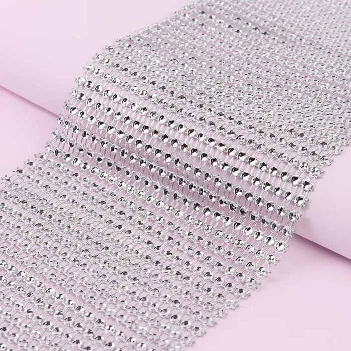 Лента с имитацией страз, 12 см, 9±1 м, цвет серебряный — Характеристики