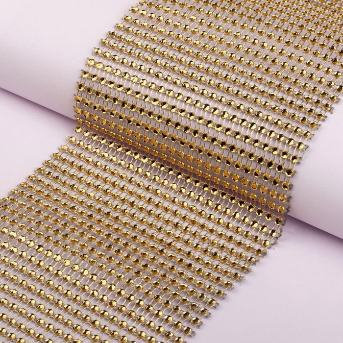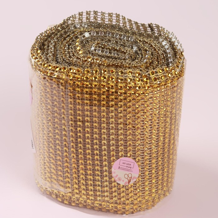 Лента с имитацией страз, 12 см, 9±1 м, цвет золотой