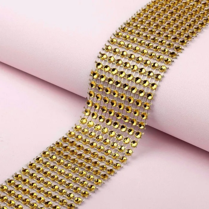 Золотистая лента с имитацией страз — это эффектный элемент декора, который добавляет проектам роскошный блеск без излишней сложности. Ширина 4 см создаёт насыщенный визуальный акцент, а покрытие, имитирующее переливы драгоценных камней, усиливает праздничное настроение. Длина от 8 до 10 метров делает её универсальной для разных видов творчества: от оформления подарков до отделки одежды.