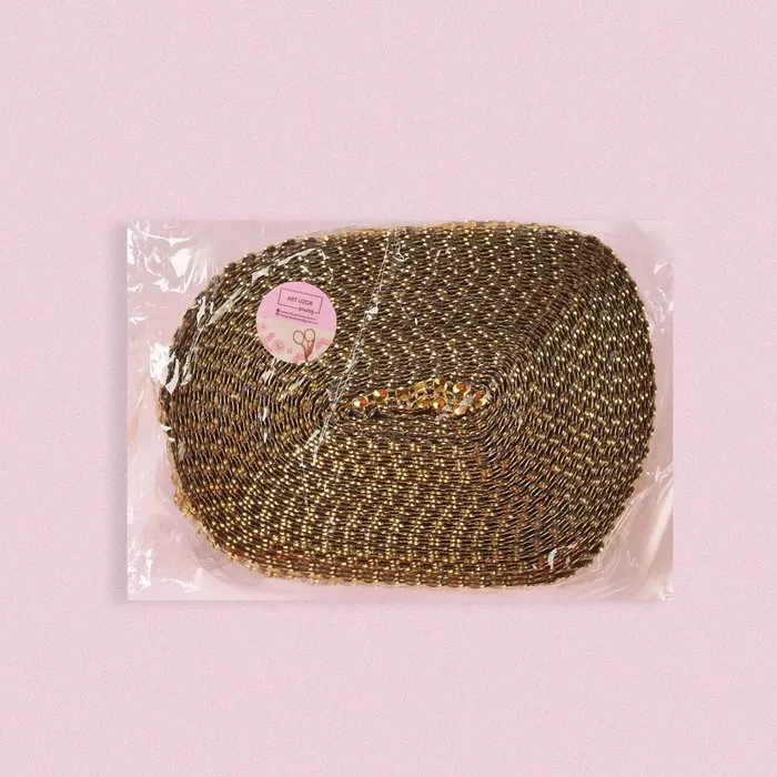 Эта лента подходит для украшения одежды, головных уборов, интерьерных деталей и новогоднего декора. Её можно пришивать и клеить — результат будет одинаково выигрышным. Золотистый цвет усиливает контраст и привлекает внимание, особенно в комбинации с темными или нейтральными тонами. С ней вы получаете готовый инструмент для яркого акцента — без лишних усилий и с гарантией эстетики.