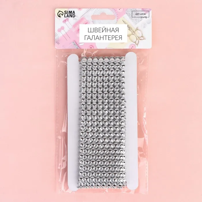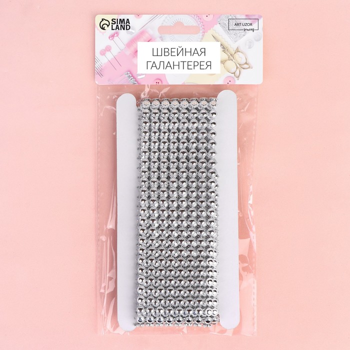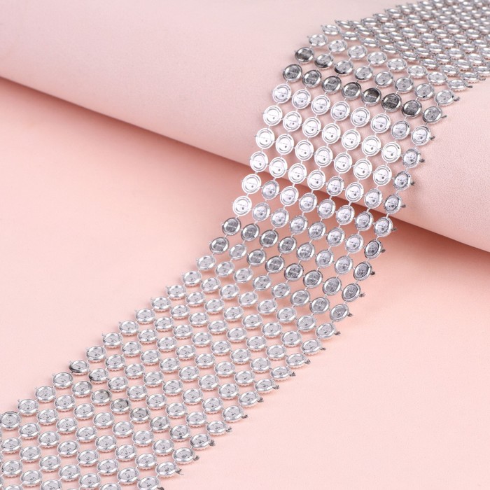 Лента с имитацией страз, ажурная, 5.5 см, 1.5 м, цвет серебряный — Характеристики