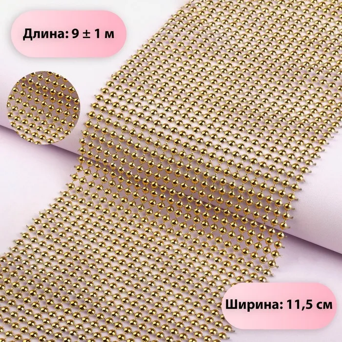 Лента с имитацией выпуклых страз, 11.5 см, 9±1 м, цвет золотой — Характеристики