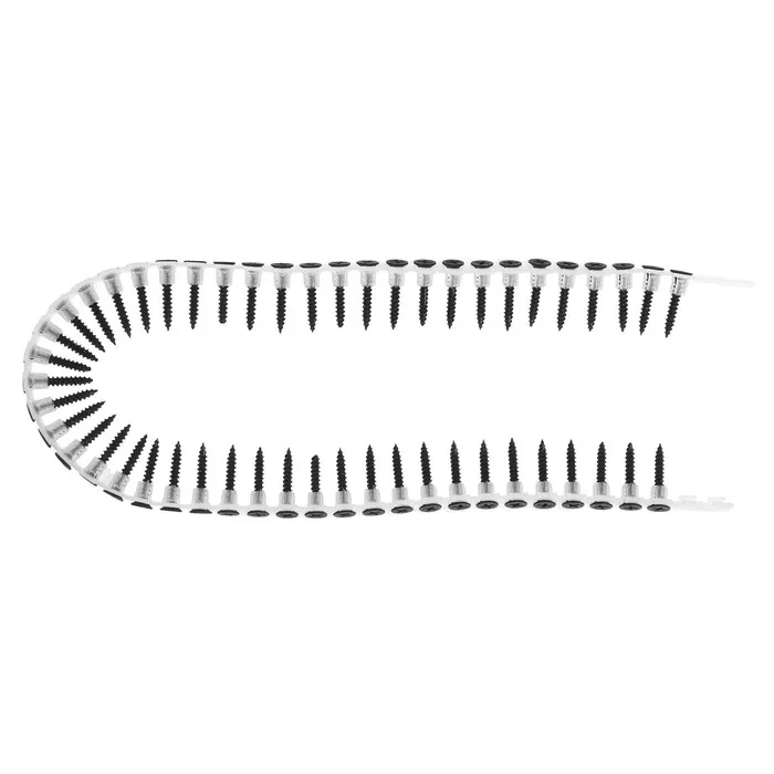 - Быстрая подача — экономия времени: Ленточная система избавляет от необходимости брать каждый саморез отдельно. Шуруповерт автоматически захватывает крепеж — это ускоряет работу в труднодоступных местах и на высоте.