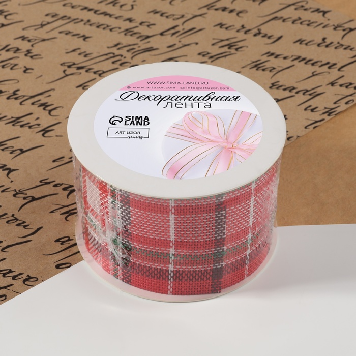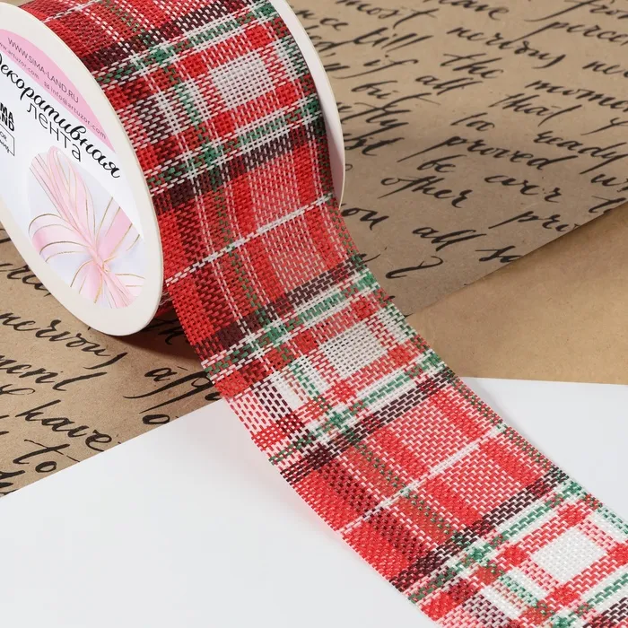 Лента текстильная «Клетка», 50 мм, 4,5 ± 0,5 м, цвет красный/зелёный — Характеристики