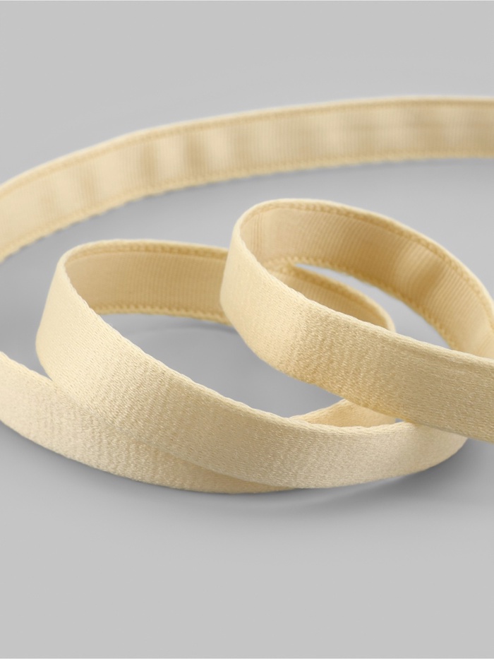 Двухшовный или двухстрочный тип ленты идеально подходит для начинающих рукодельниц, так как имеет перфорацию и швы с обеих сторон и легко перемещается при шитье на машине. Эта лента отлично подходит для вставки различных видов косточек и каркасов, поскольку она слегка ворсистая, мягкая на ощупь и нежная. Её удобно использовать для вставки китового уса или гладких косточек бюстгальтера.