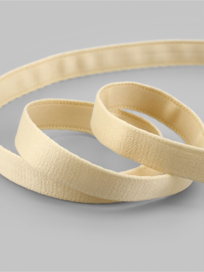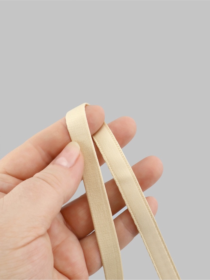Двухшовный или двухстрочный тип ленты идеально подходит для начинающих рукодельниц, так как имеет перфорацию и швы с обеих сторон и легко перемещается при шитье на машине. Эта лента отлично подходит для вставки различных видов косточек и каркасов, поскольку она слегка ворсистая, мягкая на ощупь и нежная. Её удобно использовать для вставки китового уса или гладких косточек бюстгальтера.