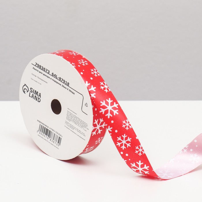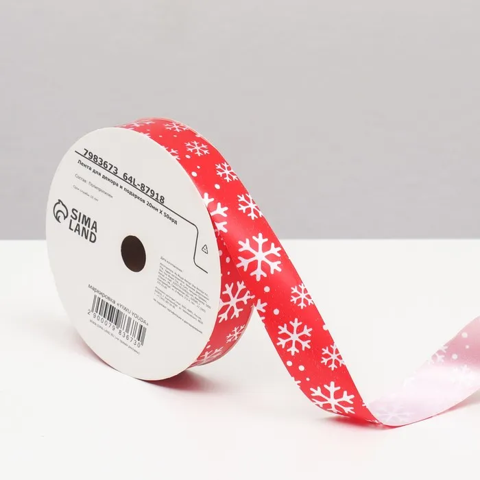 Лента упаковочная для декора и подарков, красная "Снежинки", 2 см × 45 м — Характеристики