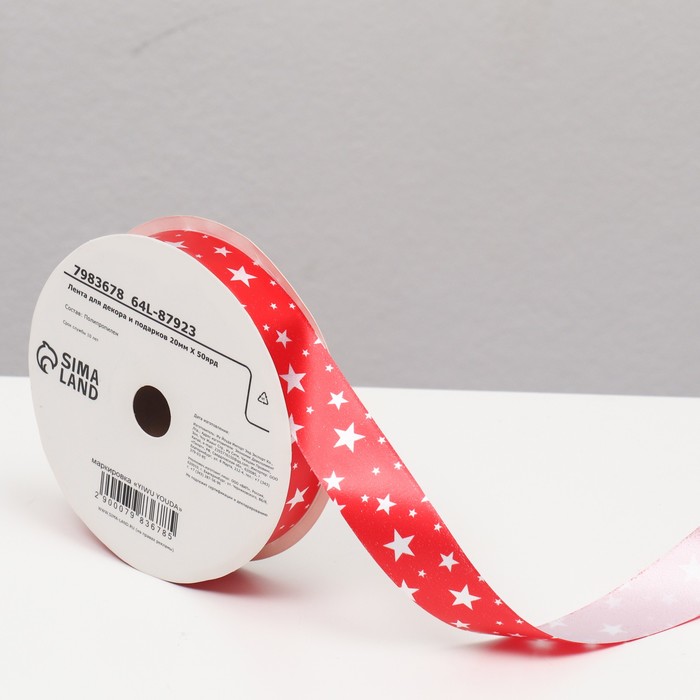 Лента упаковочная для декора и подарков, красный "Звезды", 2 см × 45 м — Характеристики