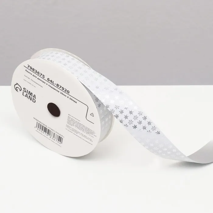Лента упаковочная для декора и подарков, серебряные снежинки, 2 см × 45 м — Характеристики
