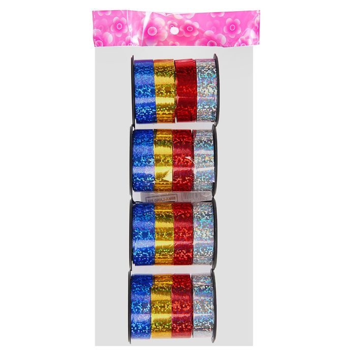 Лента упаковочная голография, для декора и подарков, МИКС 4 цвета, 1.2 см × 3 м — Характеристики