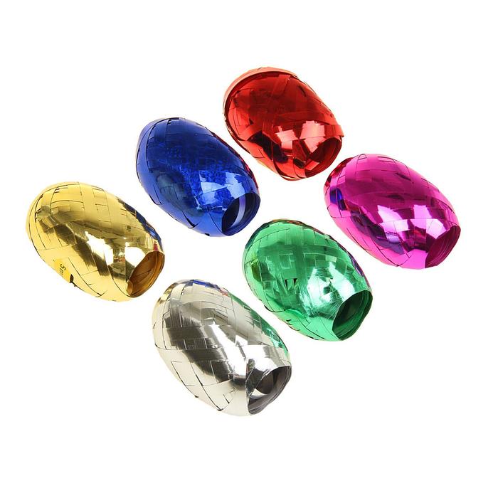 Лента упаковочная металлизированная, ассорти, набор 6 шт., 0,5 см х 10 м