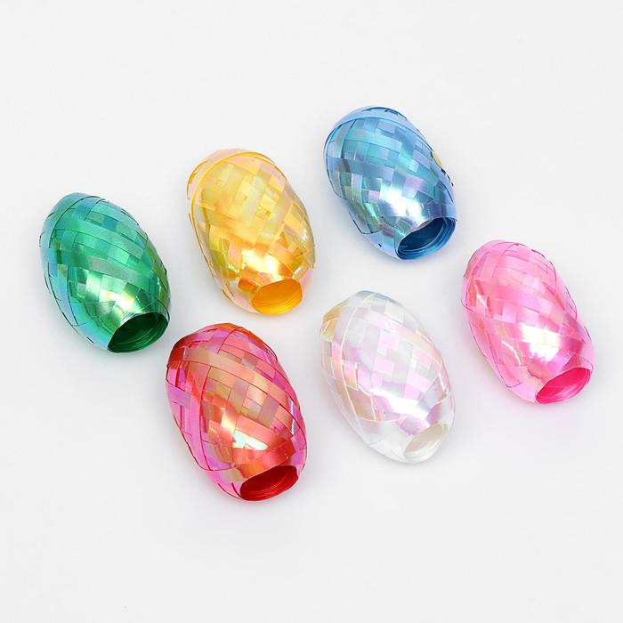 Лента упаковочная перламутровая, для шаров и подарков, ассорти набор 6 шт., 0.5 см × 10 м