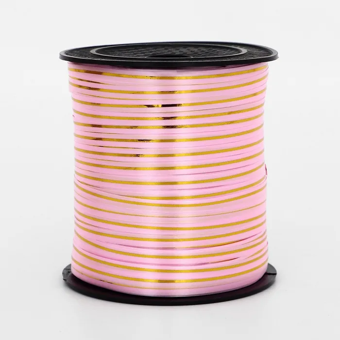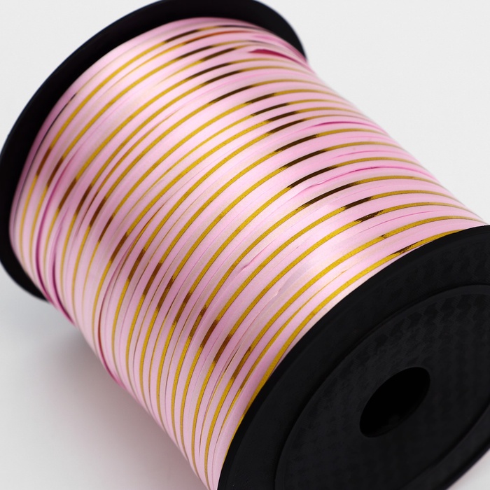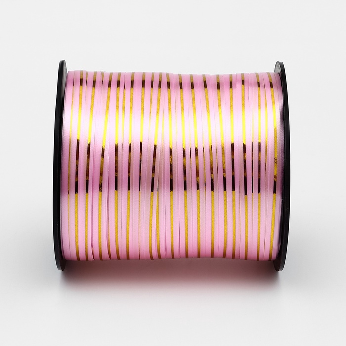 Лента упаковочная с золотой полосой, розовая, 5 мм х 225 м